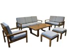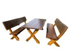 Záhradný set 1+2 – Odolný set pre 6-8 osôb, vyrobený z masívneho jelšového dreva, dostupný v elegantných farebných prevedeniach dub alebo palisander.
